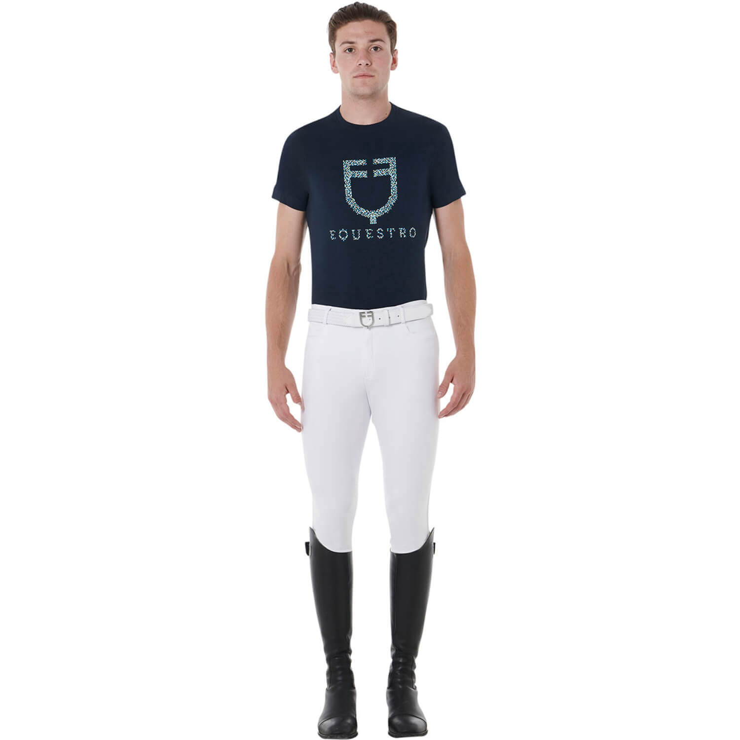 - graphic with Equestro lettering and logo along the right thigh