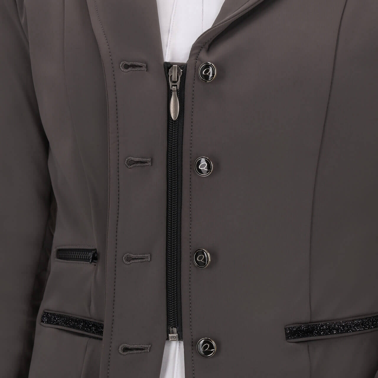 - concealed zip behind the button placket